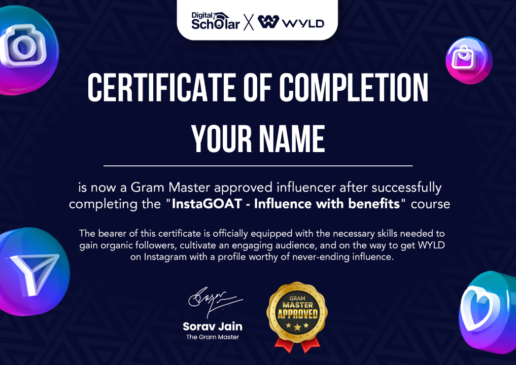 Enroll for this masterpiece course that has everything to help you kickstart your journey and excel to become a successful Instagram influencer and a potential WYLD card holder.